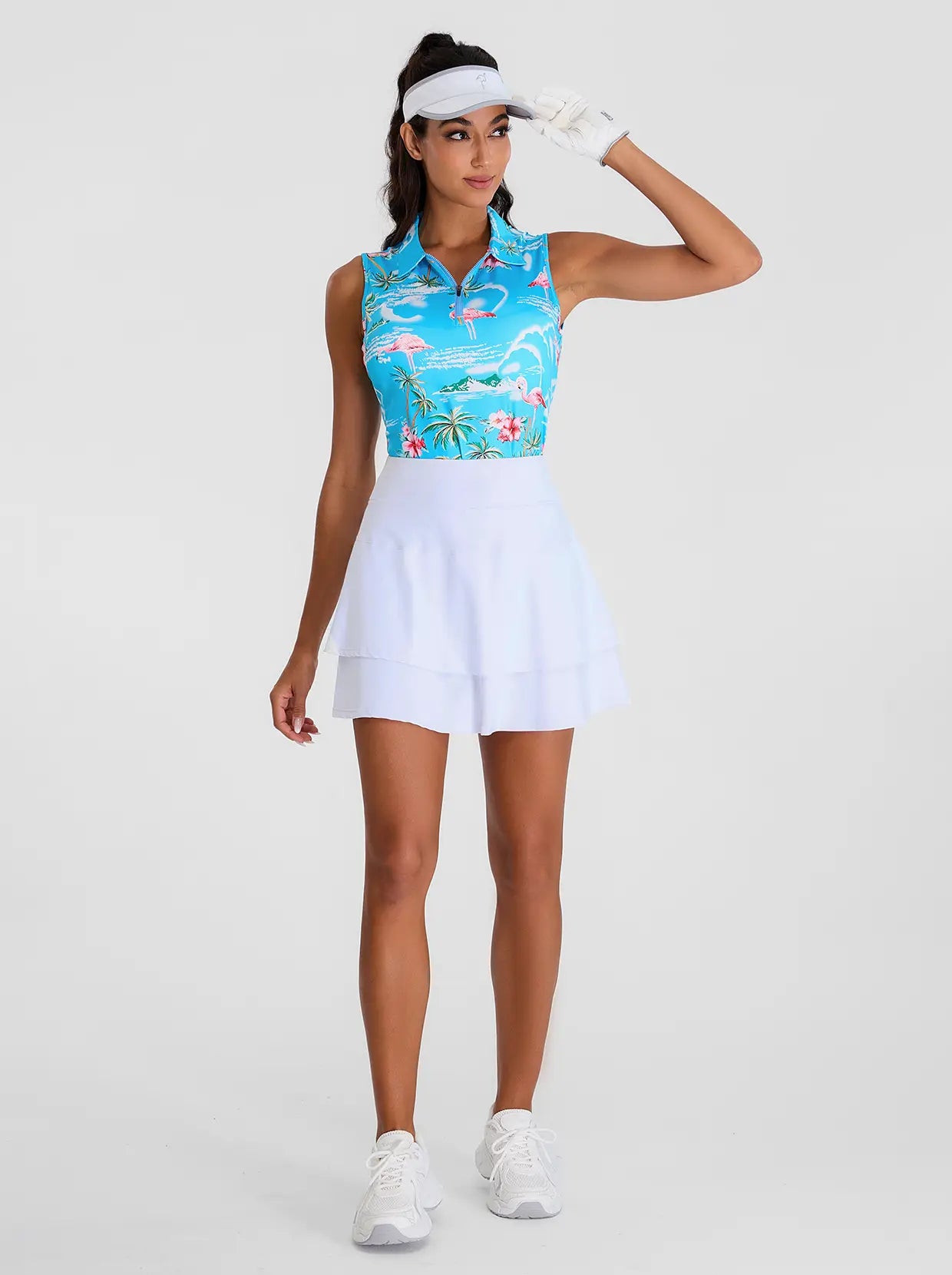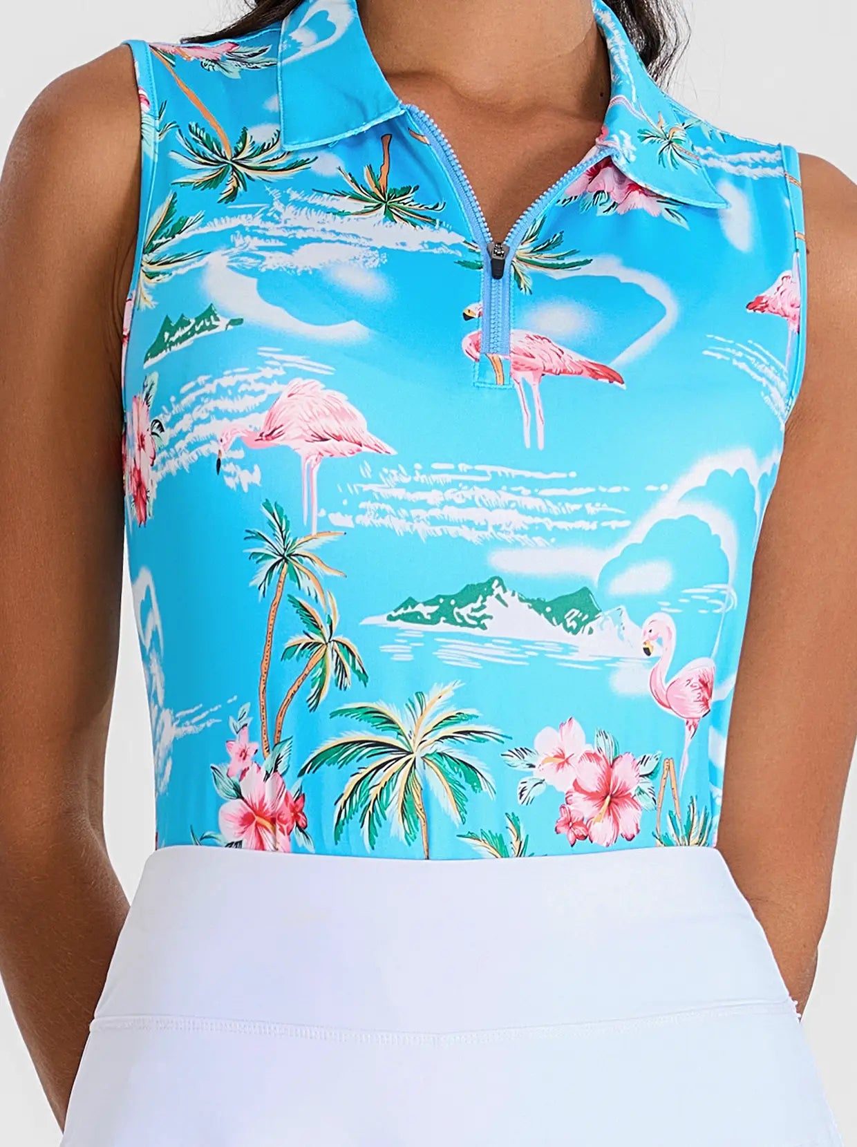 Elevate your golf game with our stylish and functional women's sleeveless polo. This vibrant flamingo design adds a touch of tropical flair to your athletic wardrobe. Crafted from premium moisture-wicking fabric, this polo is designed to keep you cool, dry, and comfortable throughout your round. The sleeveless style offers maximum breathability and range of motion, making it perfect for hot weather conditions.