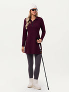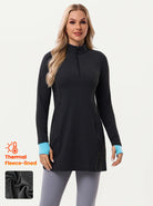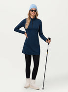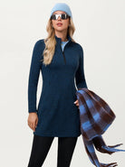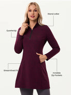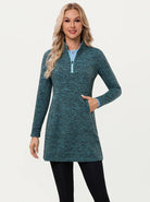 Women's Quarter-zip Long-sleeve Fleece Dress with Pockets