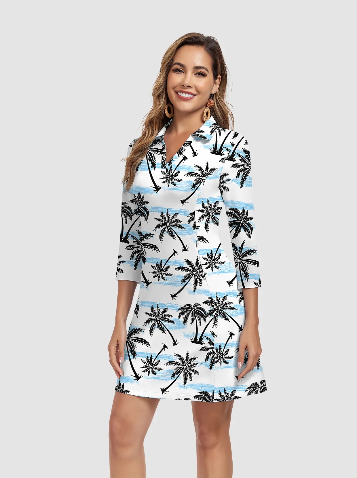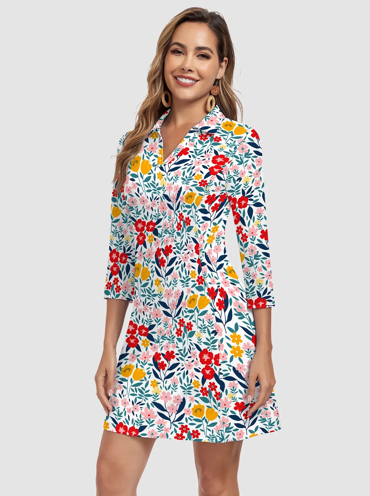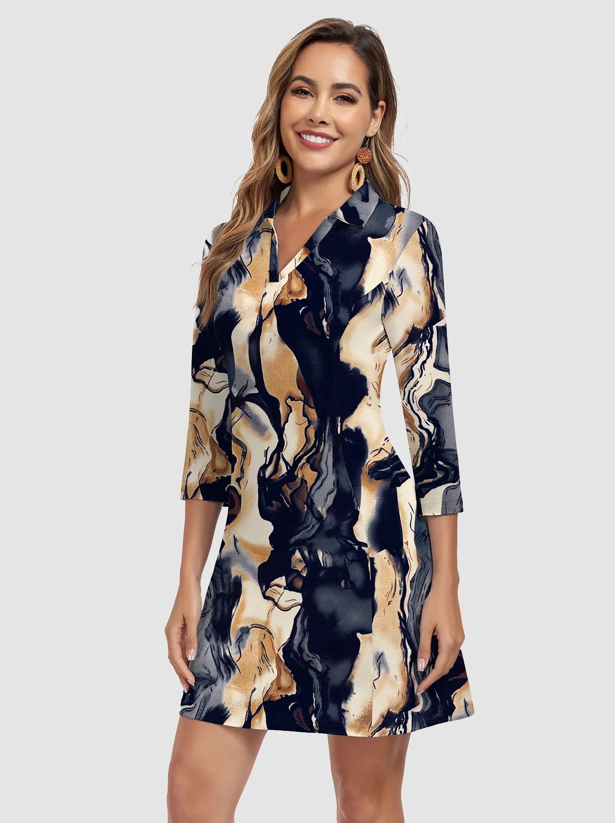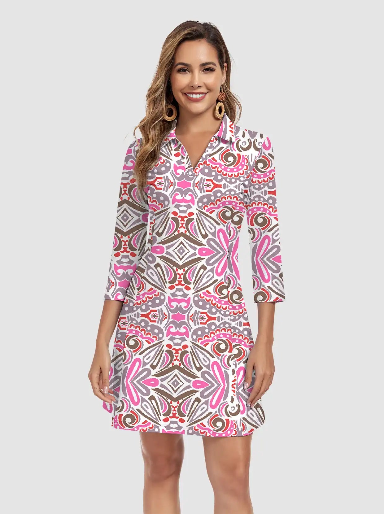 1 review35" V-neck 3/4 Sleeve Polo Dresses with Shorts and Pockets