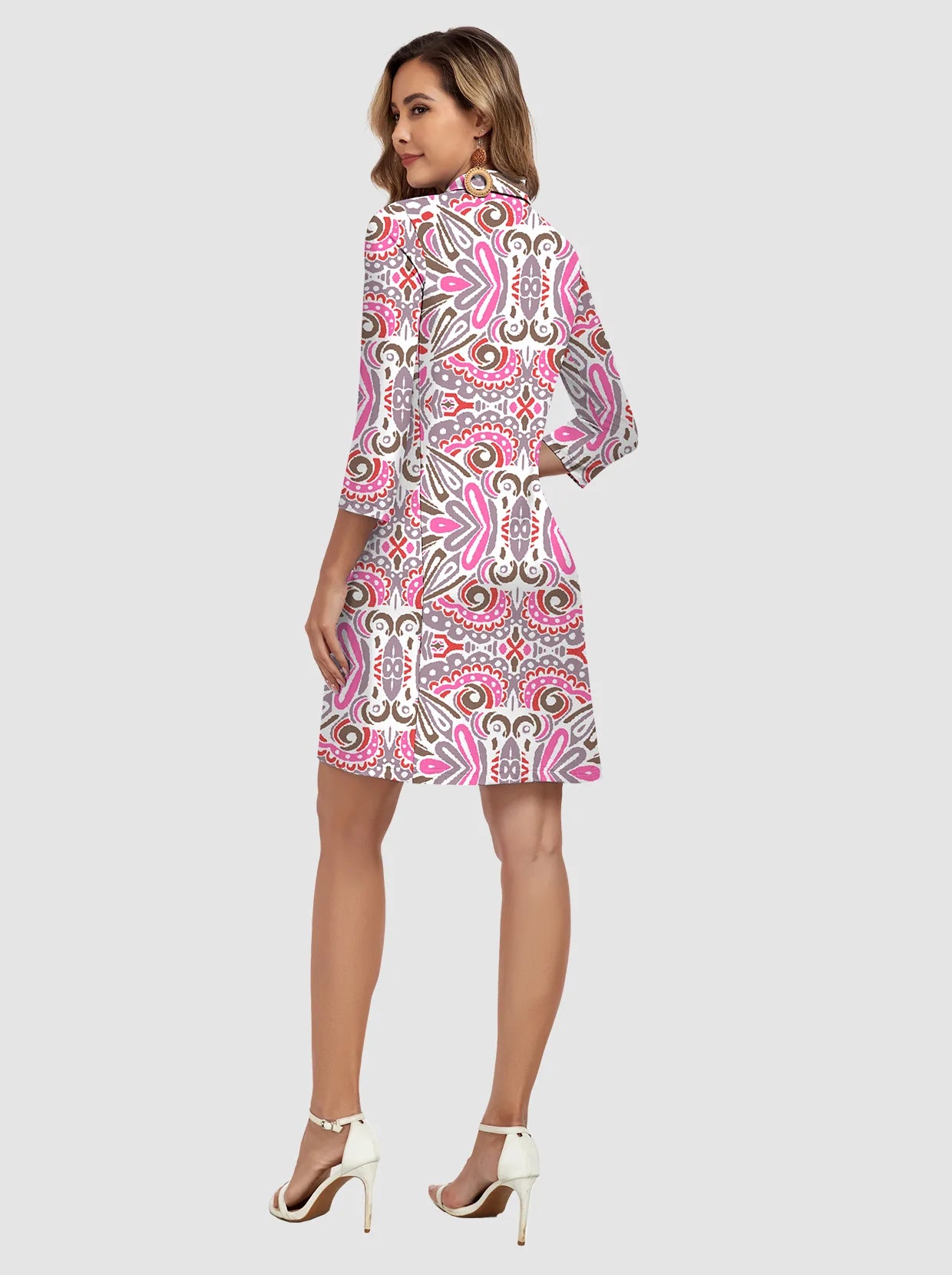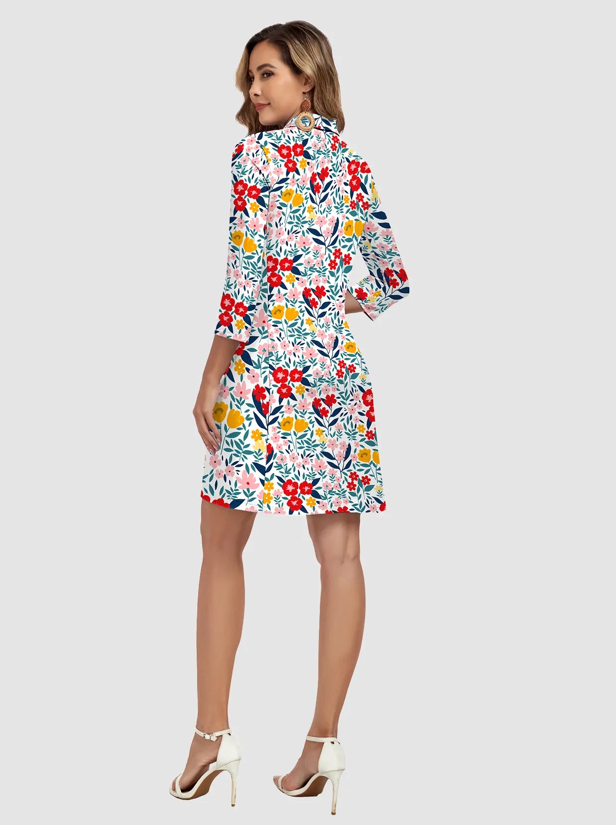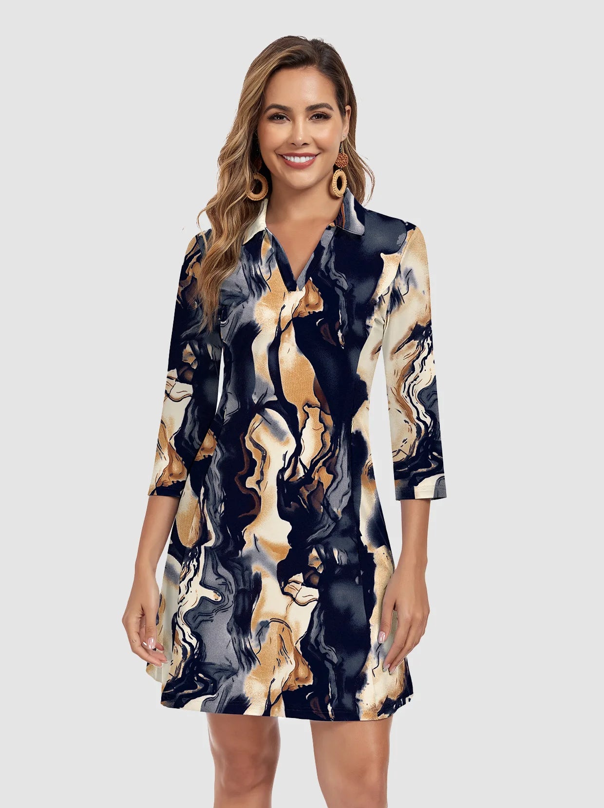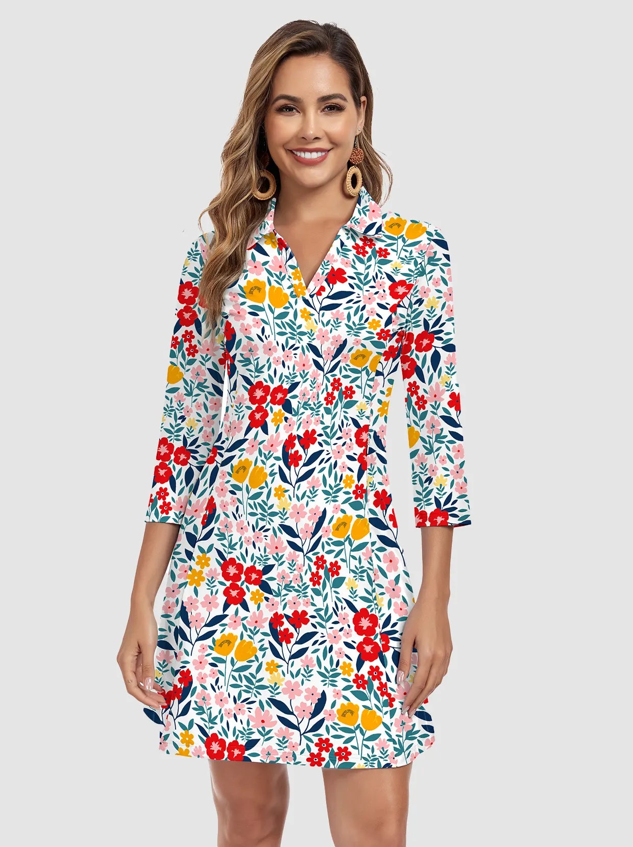 1 review35" V-neck 3/4 Sleeve Polo Dresses with Shorts and Pockets