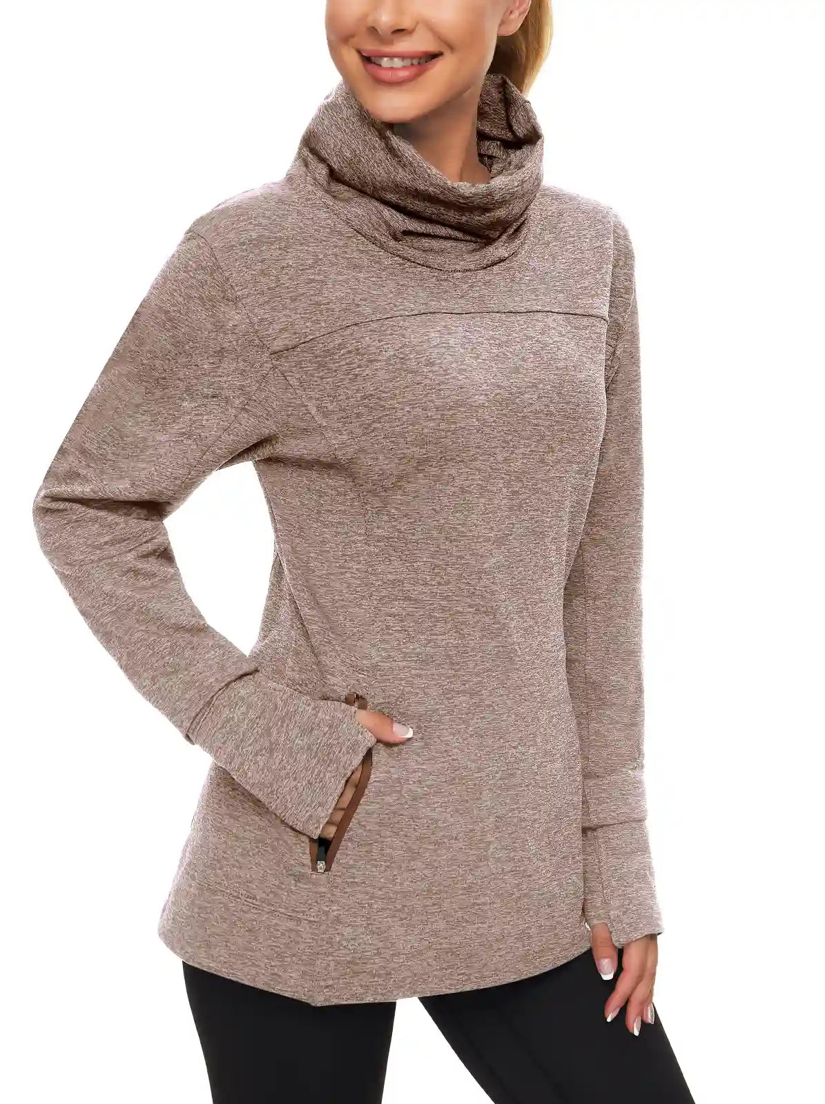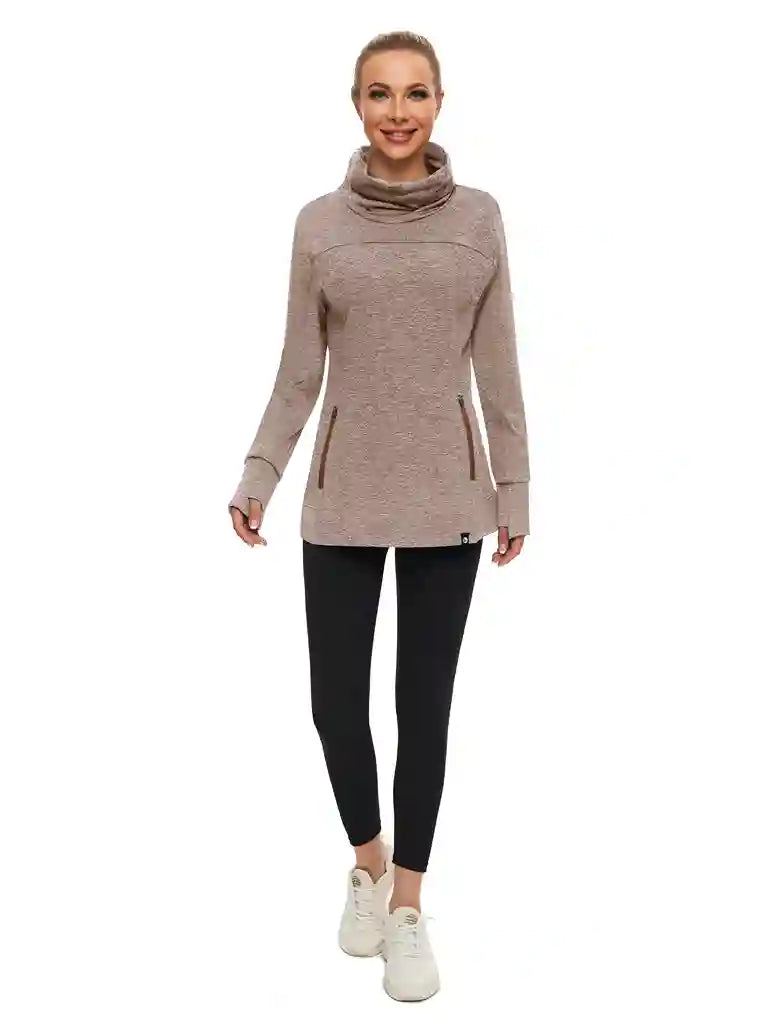 9 reviewsCowl-neck Long-sleeve Fleece Top with Zip Pocket