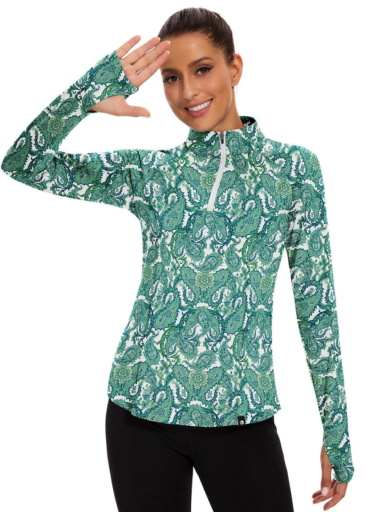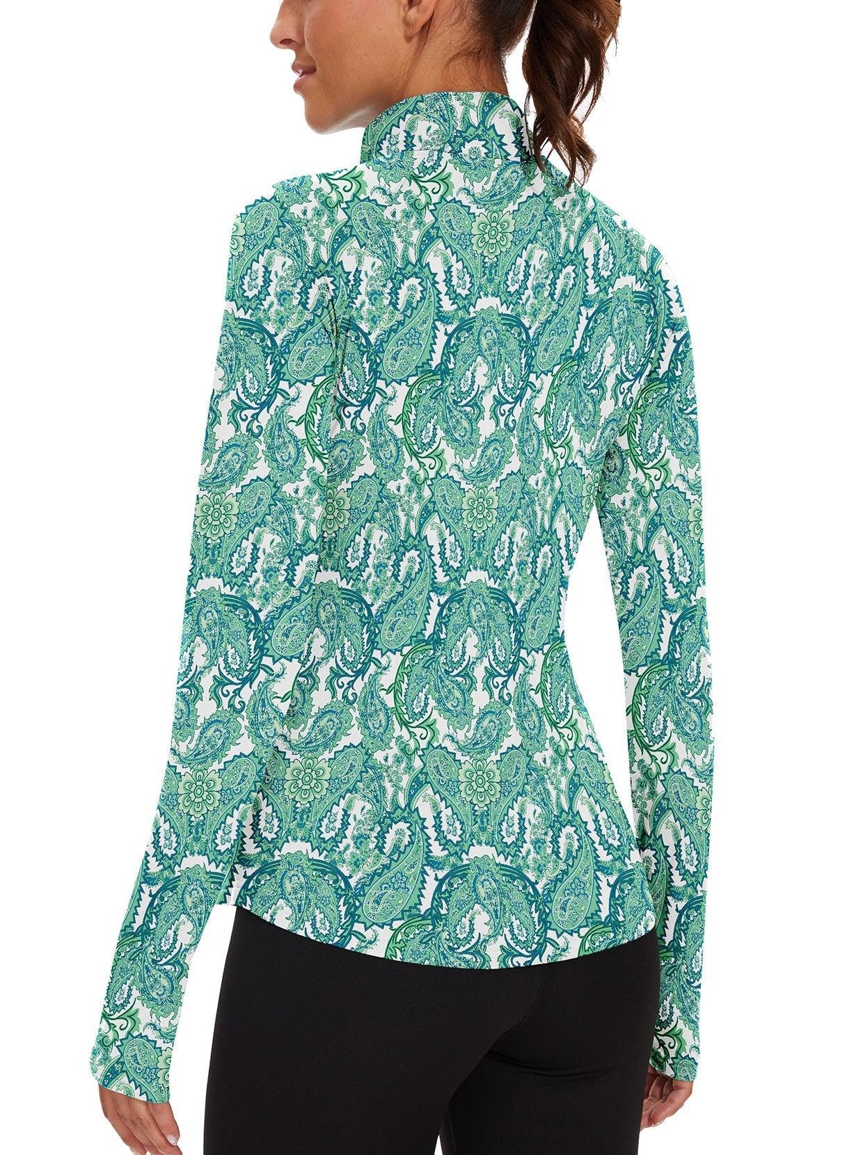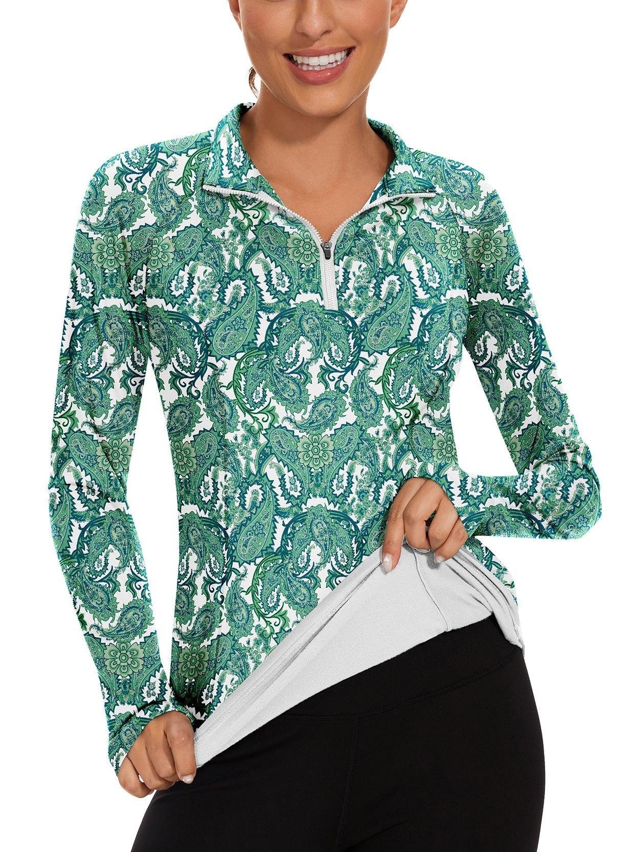 1 reviewGreen Paisley Quarter-zip Long-sleeve Fleece Top for Women