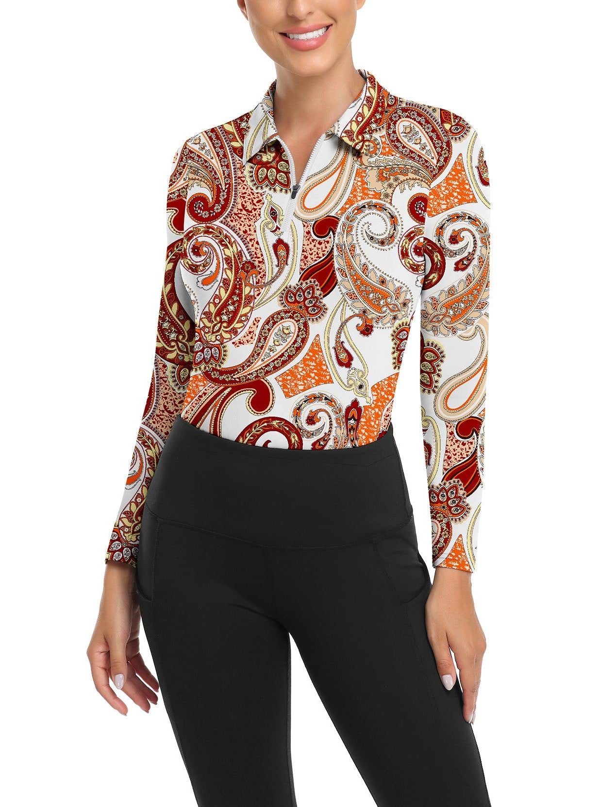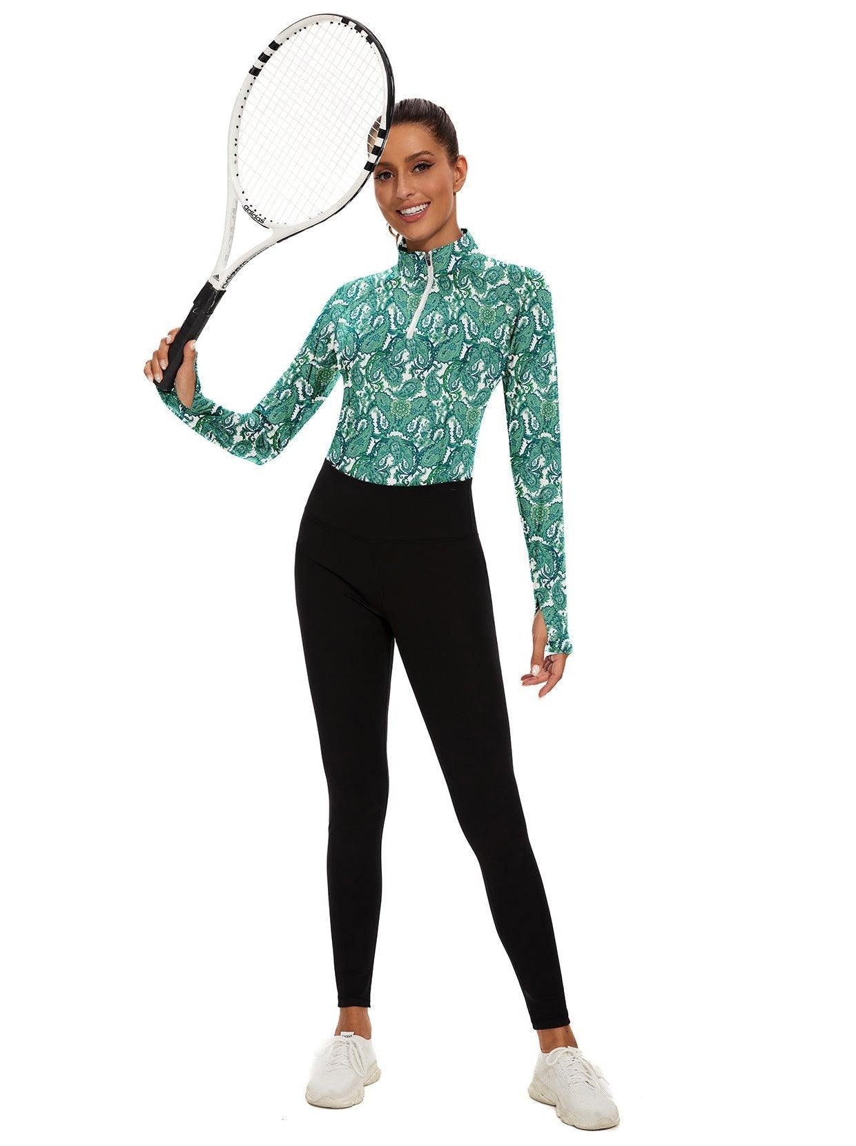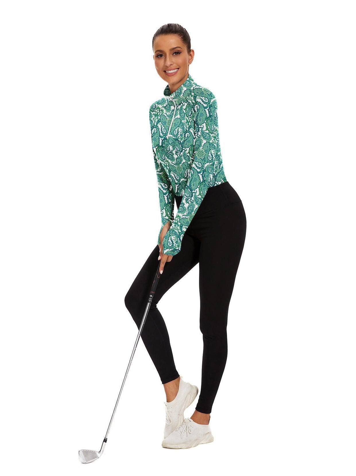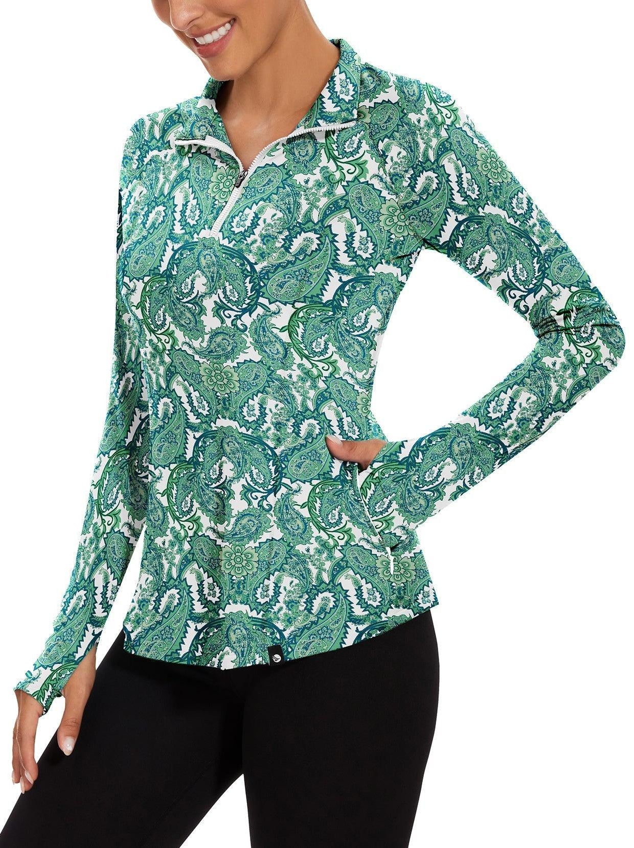 1 reviewGreen Paisley Quarter-zip Long-sleeve Fleece Top for Women