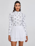 Crafted with a stylish flamingo pattern, our stand collar shirt offers practical features. Its raglan sleeves and stretch material allow for a wide range of motion, while its moisture-wicking fabric provides comfort and keeps you cool. The soft and breathable material, paired with a stand collar and quarter-zip design, makes it ideal for sports like golf, tennis, and pickleball. Yet, its versatile look and black and white colors make it suitable for everyday casual wear as well.