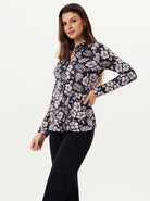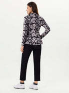 Black Floral Peplum Button-down Long-sleeve Polo Shirt