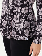 Elevate your look with the Black Floral Peplum Polo. The vibrant flower print is styled with a sharp button-down collar and a unique, curved peplum hem that defines the waist for a tailored silhouette. Engineered with high-stretch, moisture-wicking technology, the fabric feels incredibly soft and keeps you dry and comfortable—from the court to casual outings.