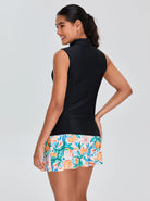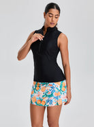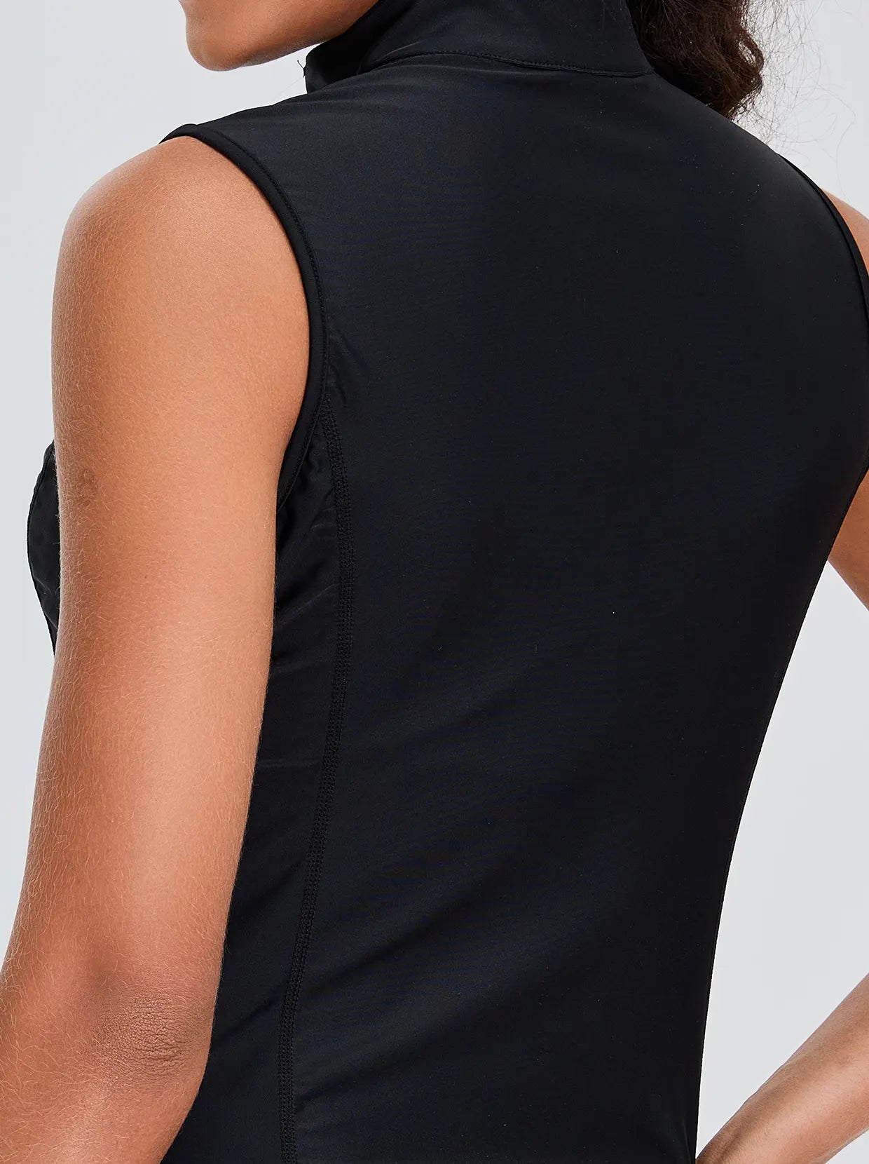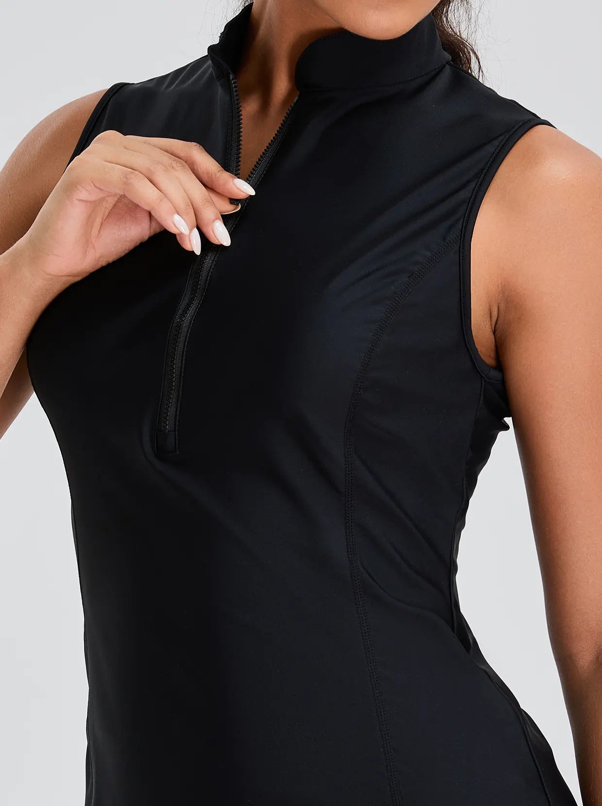 Black Quarter-zip Sleeveless Rash Guard For Women