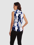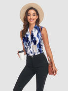 Blue Crack Print Button-Down Sleeveless Polo Shirts For Women