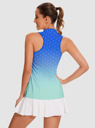 Blue Dot Gradient Print Quarter-zip Racerback Sleeveless Shirt