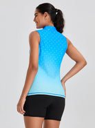 Blue Gradient Print Quarter-zip Sleeveless Rash Guard For Women