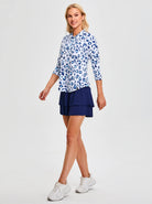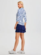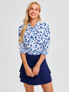 Blue Leopard Quarter-zip 3/4 Sleeve Golf Polo Shirt for Women
