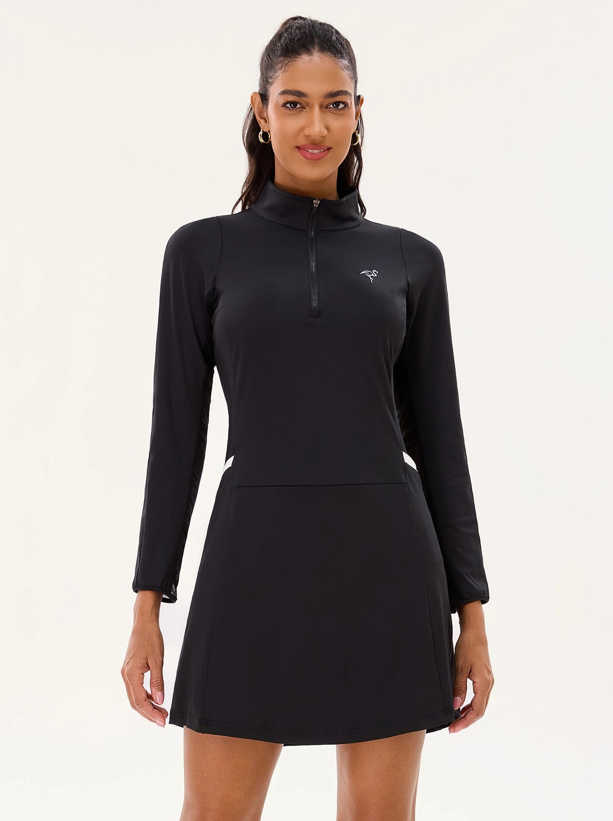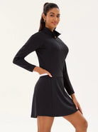 Breathable Black 34.5" Long-sleeve Active Dress with Pockets (SHIP IN 12 DAYS)