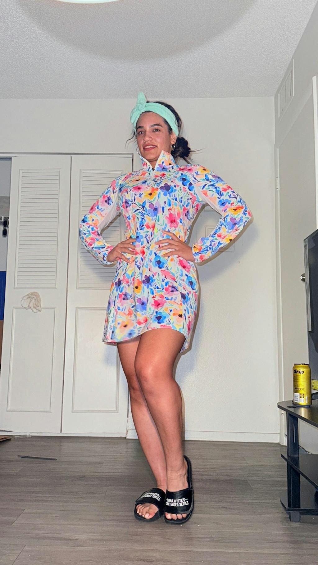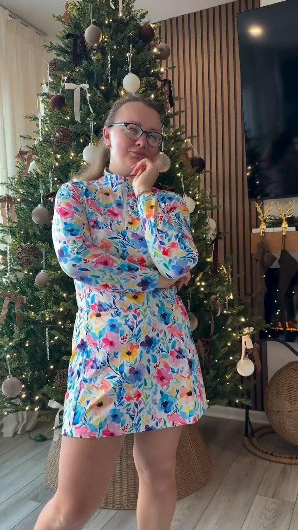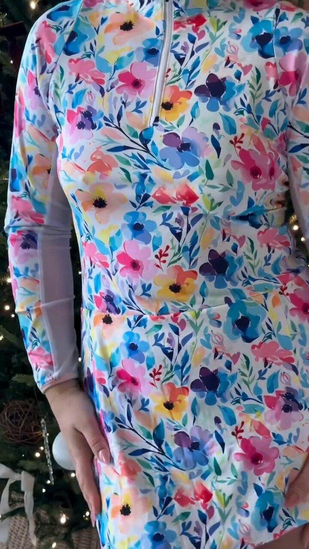Breathable Colorful Floral 34" Quarter-zip Long-sleeve Dress with Shorts