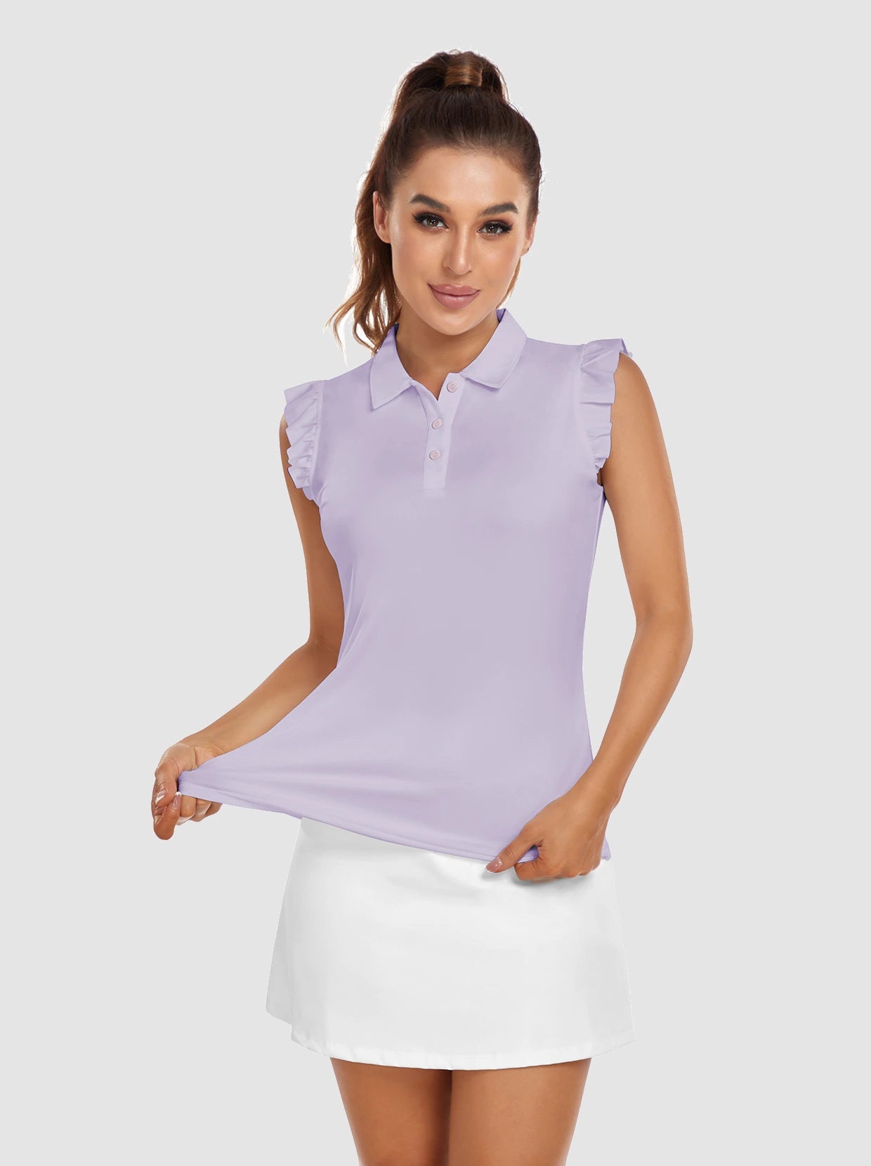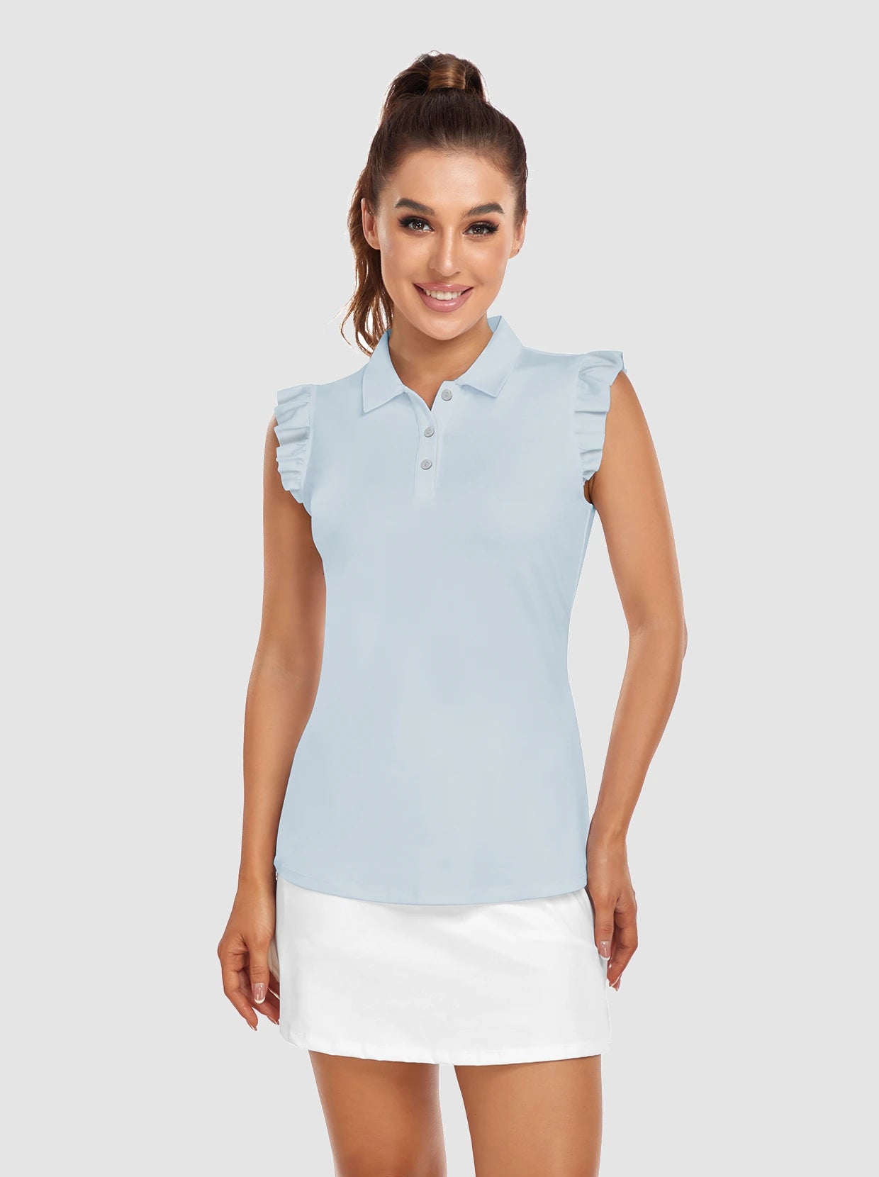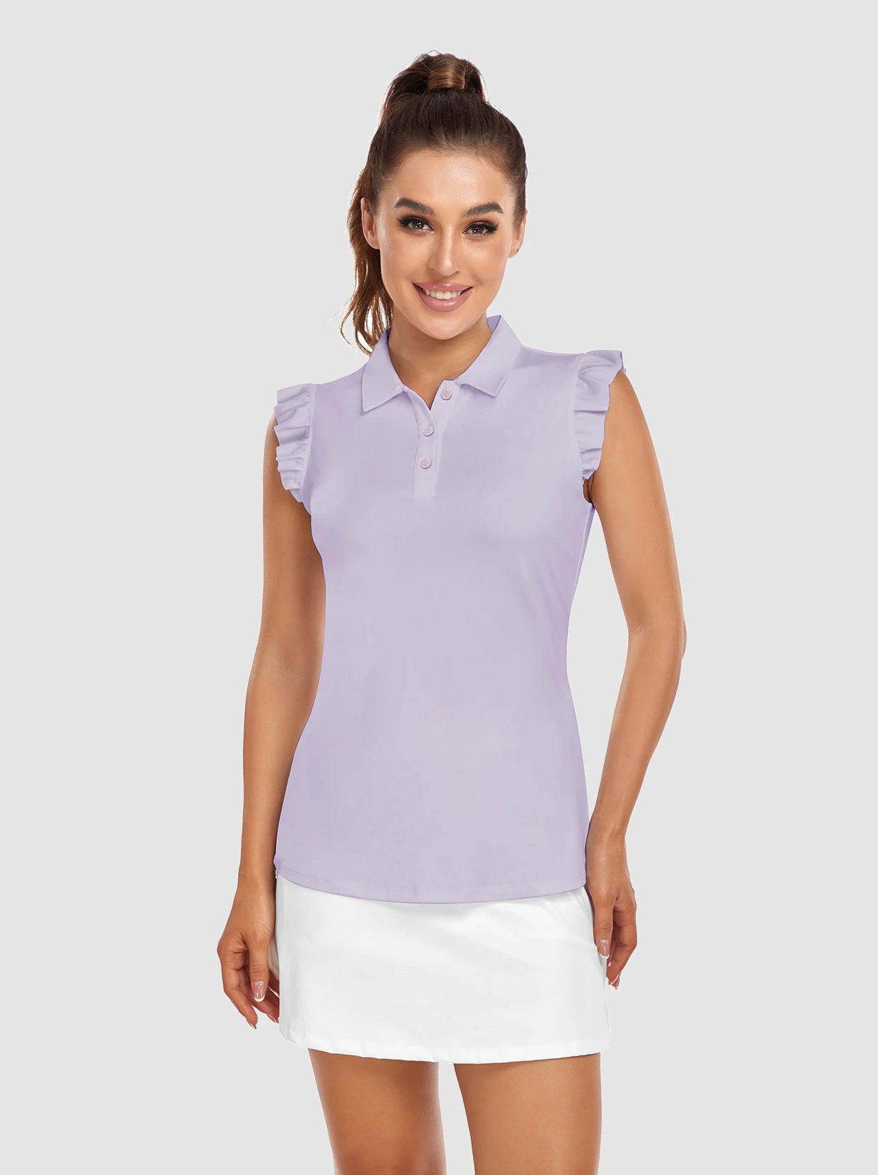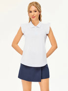 Button-Placket Ruffled Sleeveless Polo Shirt