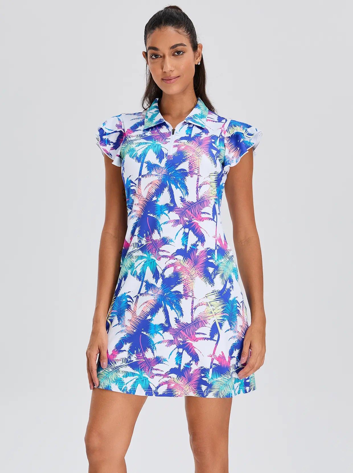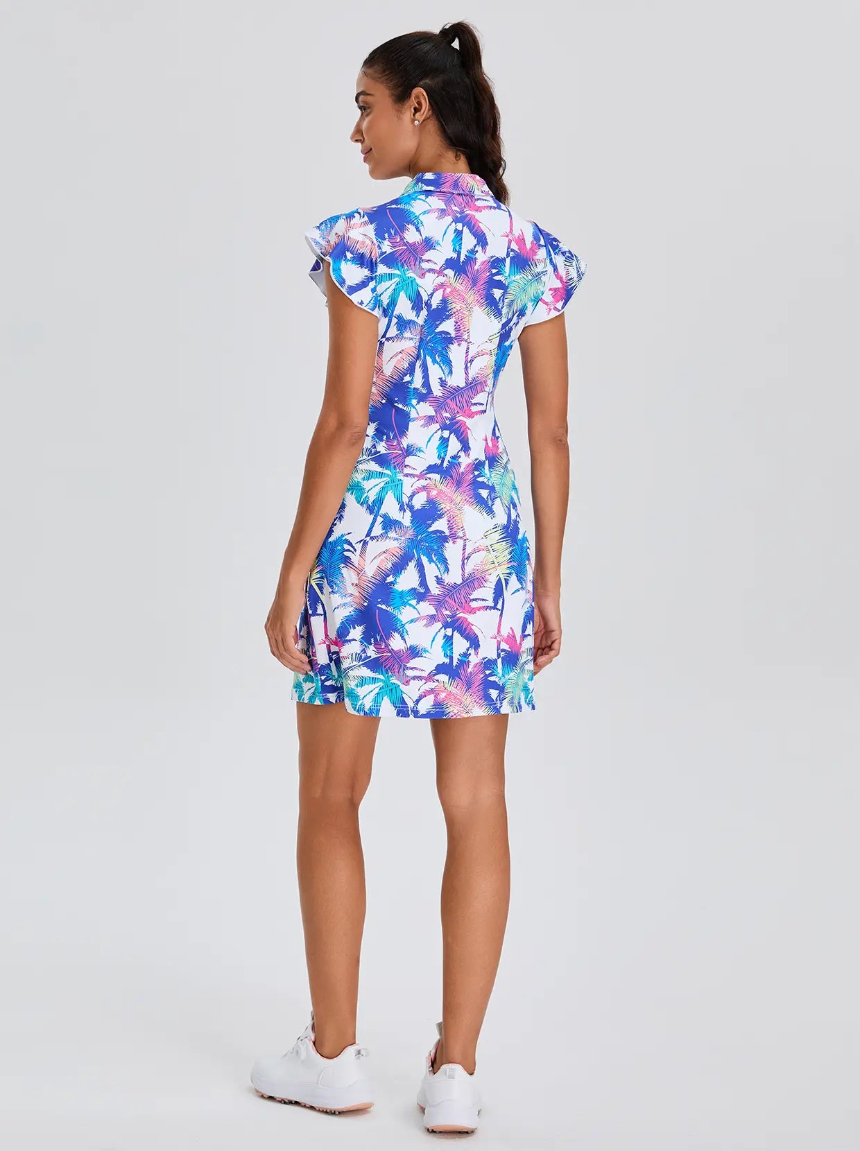 Stay stylish and comfortable with our Colorful Leaf Quarter-zip Dresses. Made with moisture-wicking and breathable fabric, it's perfect for staying cool during outdoor activities like golf, tennis, pickleball, or simply as daily wear. Plus, the stretch material and inner shorts provide maximum mobility and functionality, while the fun leaf print and ruffle sleeves add a touch of flair. With this dress, you'll have everything you need to conquer your day in style.