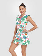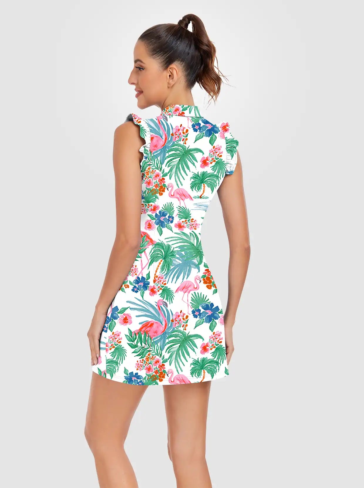 33" Flamingo Quarter-zip Ruffled Sleeveless Active Dress with Shorts