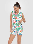 Get ready to conquer any activity with our Flamingo Quarter-zip Sleeveless Active Dress with Shorts. The 4-way stretch allow for comfortable movement, while the moisture-wicking and breathable fabric keeps you cool and dry throughout the day. With its cute pink flamingo and green leaf print, this dress is perfect for any occasion - from golf and tennis to the office and daily wear. Stay stylish and comfortable all day long!
