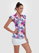 Unleash your wild side with our Flamingo Sleeveless Polo Shirt. Made from moisture-wicking, breathable, and soft material, this sleeveless golf polo is not only stylish but also functional. The ruffle sleeves add a feminine touch while the V-neck collar keeps you cool on the course. Available in a flamingo print, it's perfect for a day on the green or for everyday wear. Whether you're playing golf, tennis, or pickleball, this shirt will keep you feeling comfortable and confident.