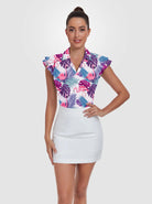 Flamingo Ruffled Sleeveless Polo Shirt For Women