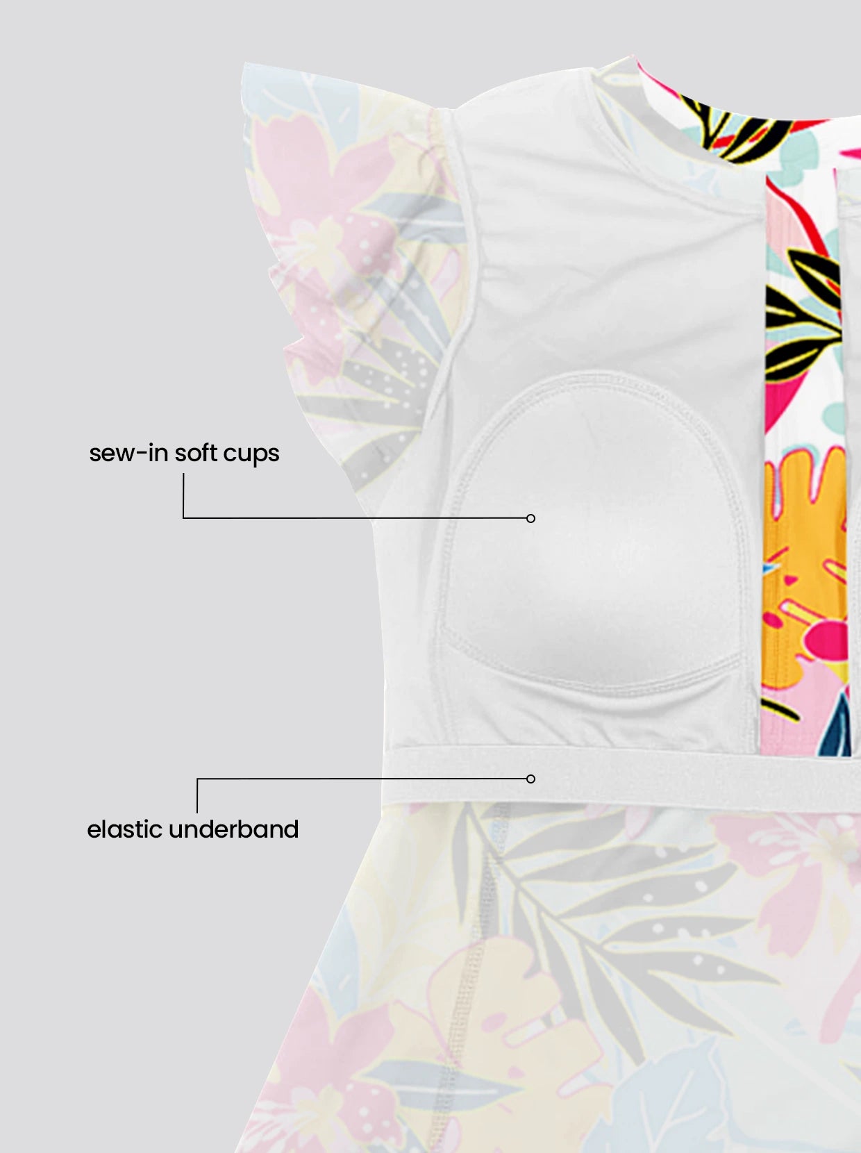 Floral Ruffled Sleeveless Rash Guard with Built-in Bra