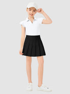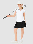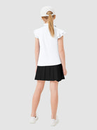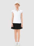 Keep your girl comfortable and stylish from playtime to downtime with this versatile polo. Designed for ages 6-14, it features moisture-wicking, lightweight, 4-way stretch fabric for ultimate comfort during any activity. The v-neck and ruffled sleeves add a touch of flair, making it perfect for both active days and casual wear.