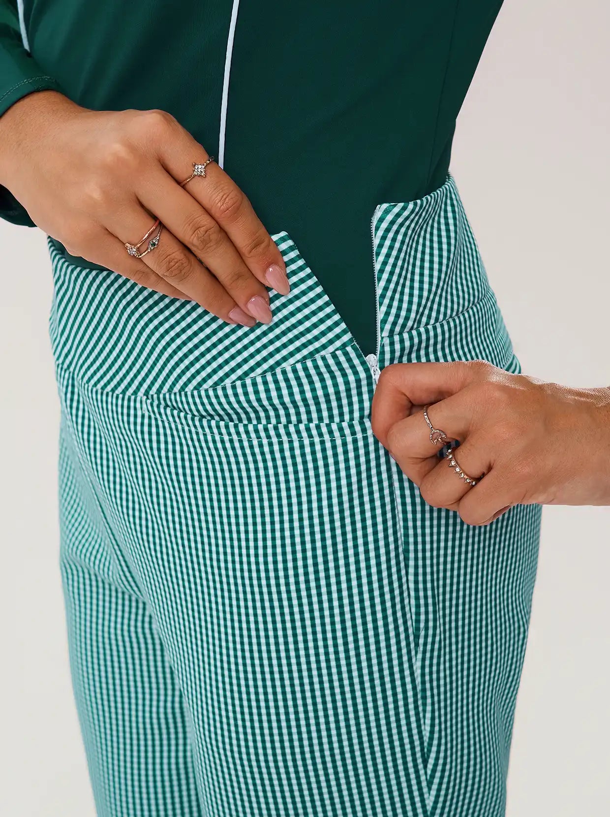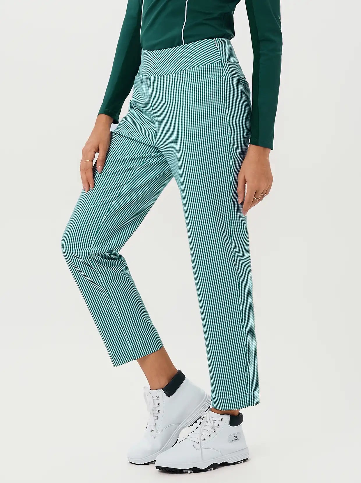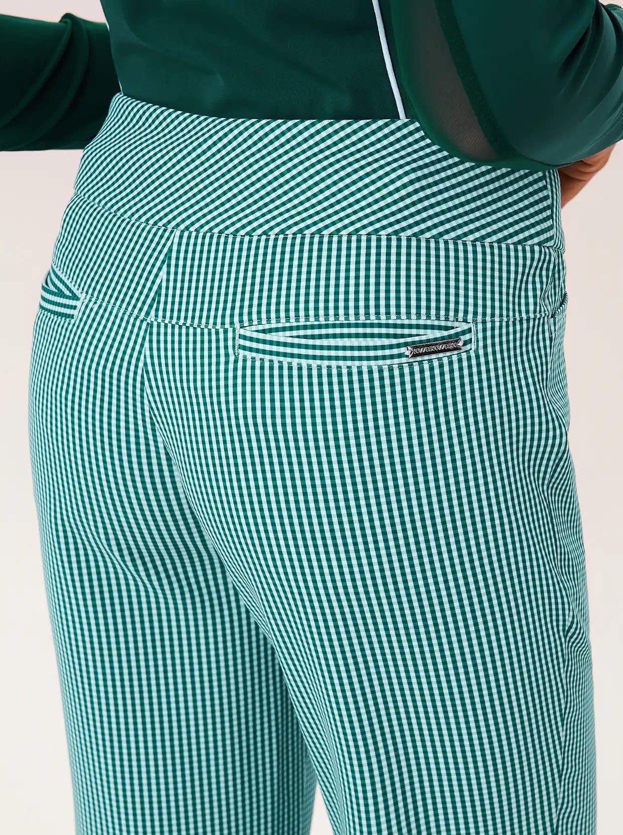 Green Checkerboard 37" Side-zip Quick-dry Ankle Pants with Pockets