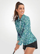 Green Paisley Quarter-zip Long-sleeve Polo Shirt for Women