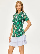 Green Shamrock Quarter-zip Short-sleeve Polo Shirt