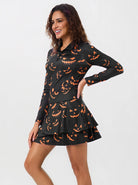 Halloween Pumpkin Grin Print V-neck Long-sleeve Polo Shirt