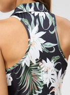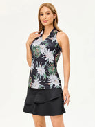 Hawaii Style Floral V-neck Racerback Sleeveless Polo Shirt
