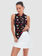 Heart Print Racerback Quarter-zip Sleeveless Shirt