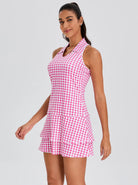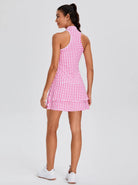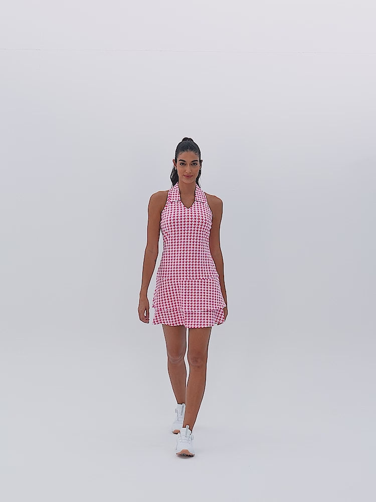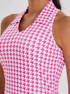 Ladies 32" Pink Houndstooth Racerback Sleeveless Dress with Shorts