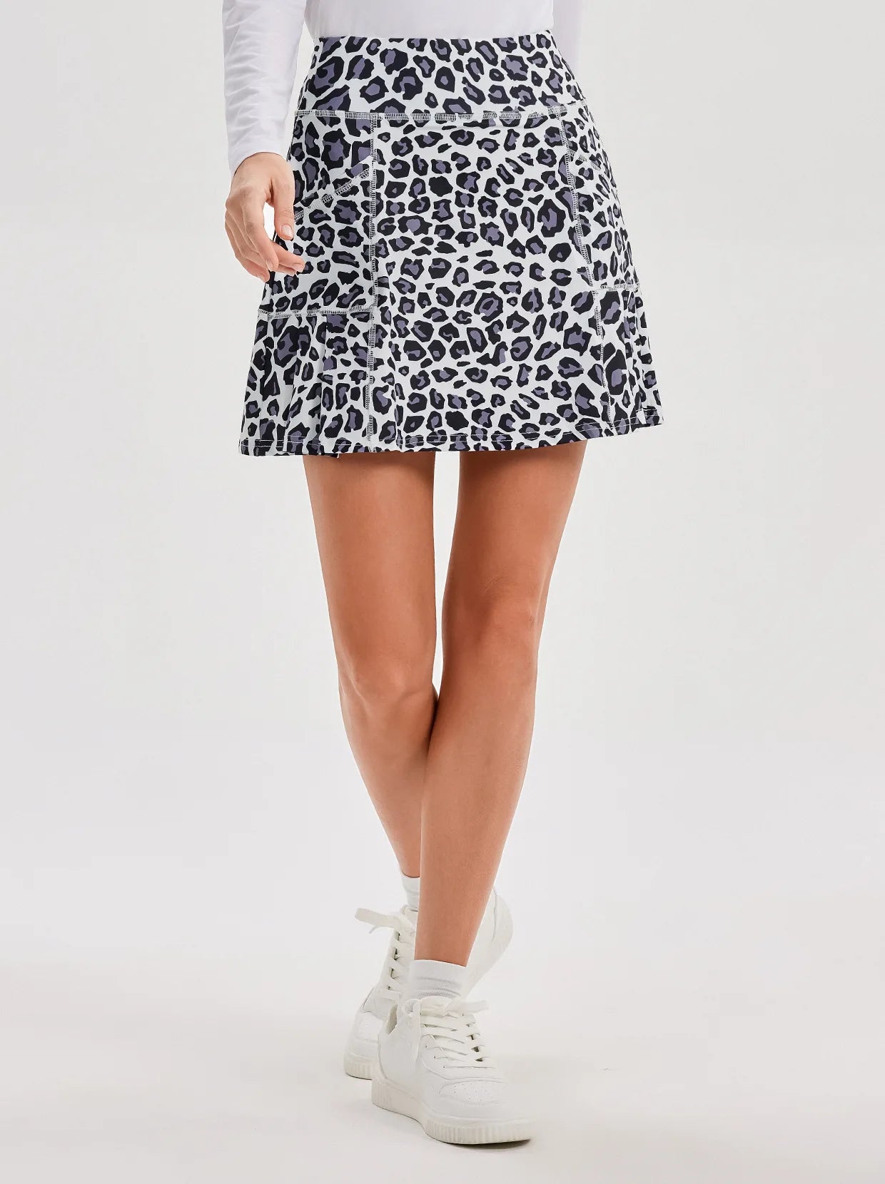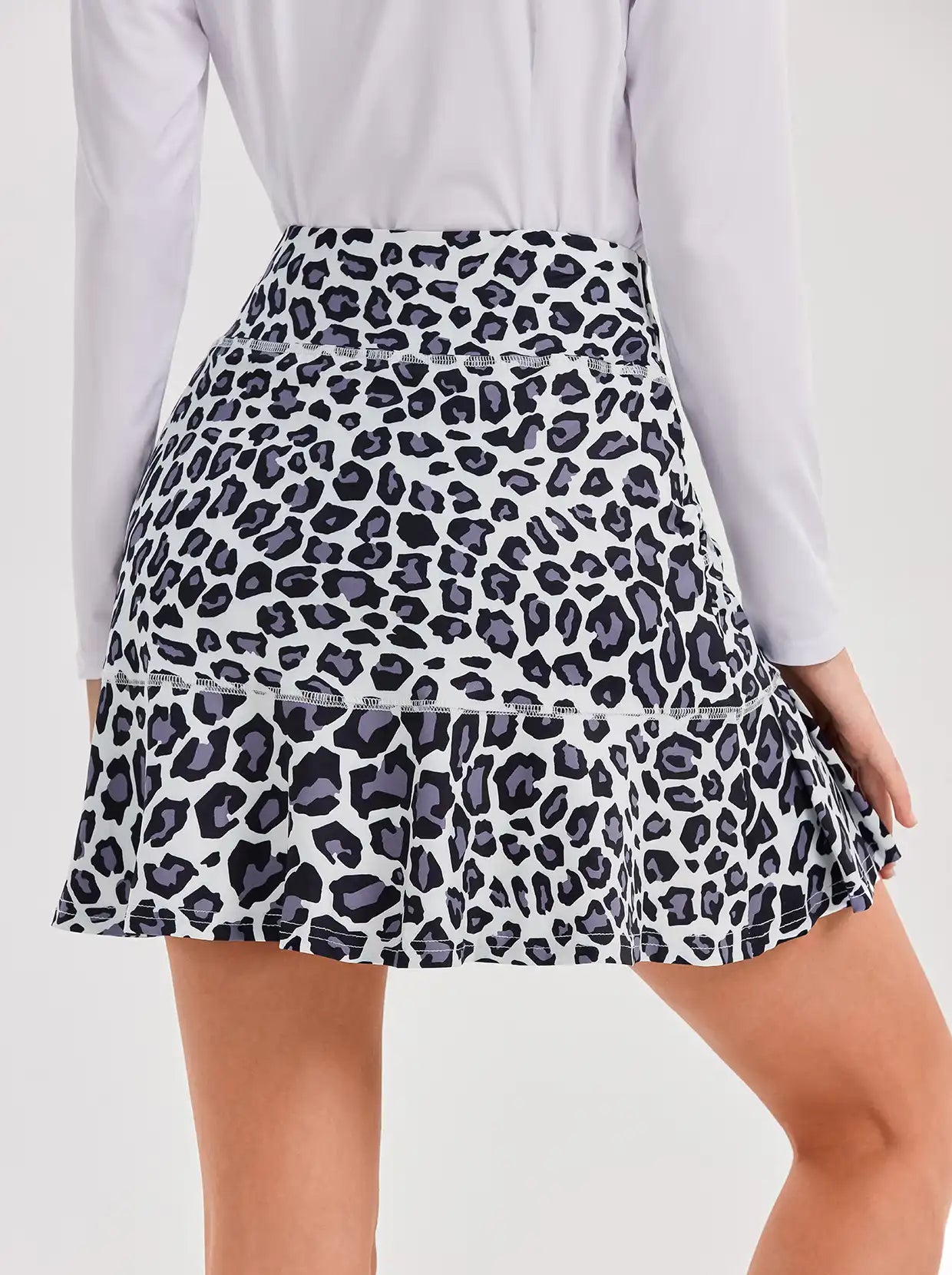 Enjoy all-day comfort and protection from the sun with our UPF50+, leopard pleated skorts. Made with soft and moisture-wicking material, our active skort also offers the convenience of built-in shorts and pockets, perfect for all your favorite activities and casual outings. The leopard pattern adds a touch of personality to this versatile piece.