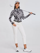 Ladies White Print Quarter-zip Long-sleeve Shirt with Pockets