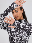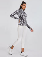 Unleash your inner athlete with our Women's White Print Quarter-Zip Long-Sleeve Shirt. The lightweight, 4-way stretch fabric allows unrestricted movement, while the moisture-wicking technology keeps you dry and comfortable. The thumb holes keep the sleeve in place and provide extra coverage, zipper pockets add extra convenience. The convenient quarter-zip design allows you to easily adjust your neckline for optimal comfort and breathability during workouts.