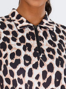 Elevate your athletic wear game with our UPF50+, Leopard Print Quarter-zip Ruffled Short-sleeve Polo Shirt. Designed with stretch, moisture-wicking, and quick-dry materials, this shirt makes for a comfortable and stylish option for your active lifestyle. Perfect for golf, tennis, pickleball, or just casual wear, this top will quickly become a favorite in your wardrobe.