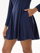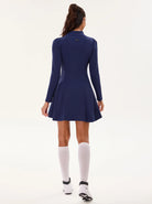Navy 34" Long-sleeve Ruffled Golf Dress with Pockets(Ship in 6 Days)