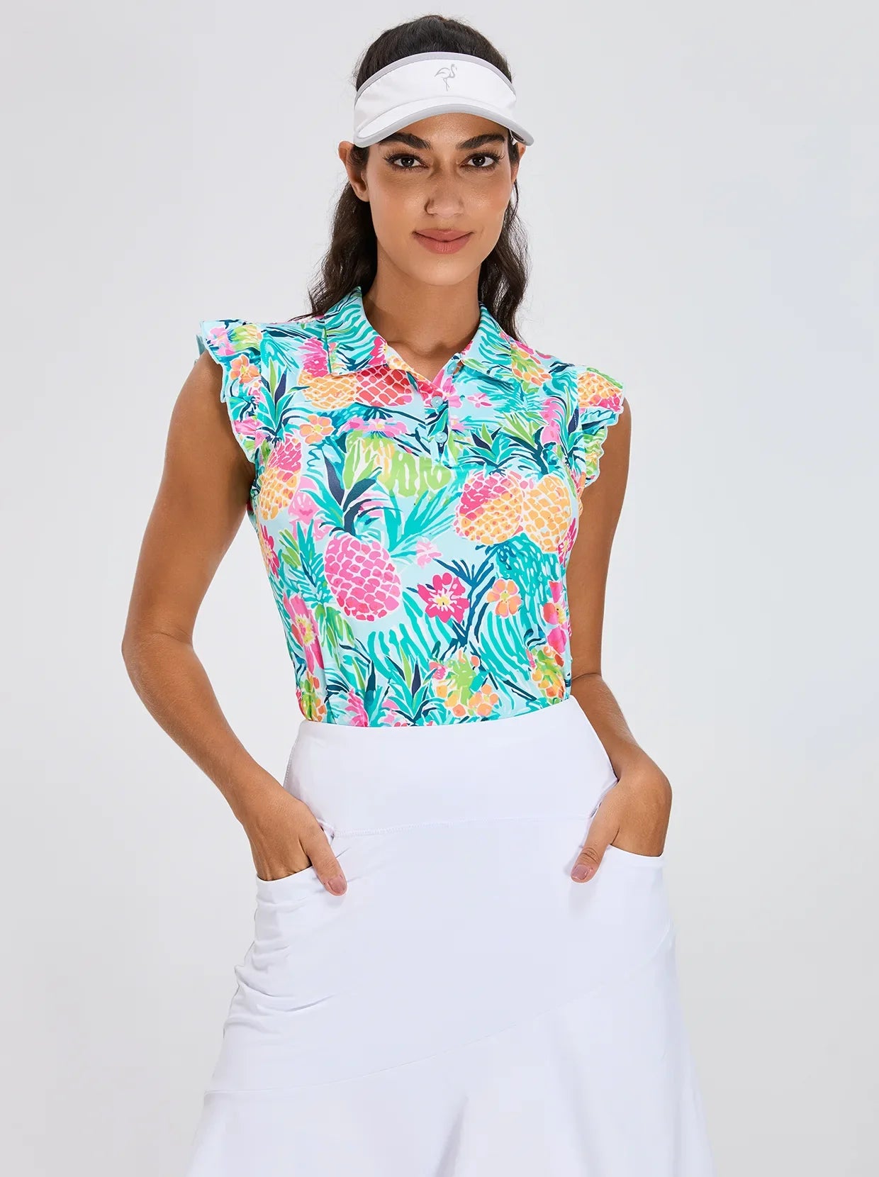 Pineapple Ruffled Sleeveless Button-placket Polo Shirt