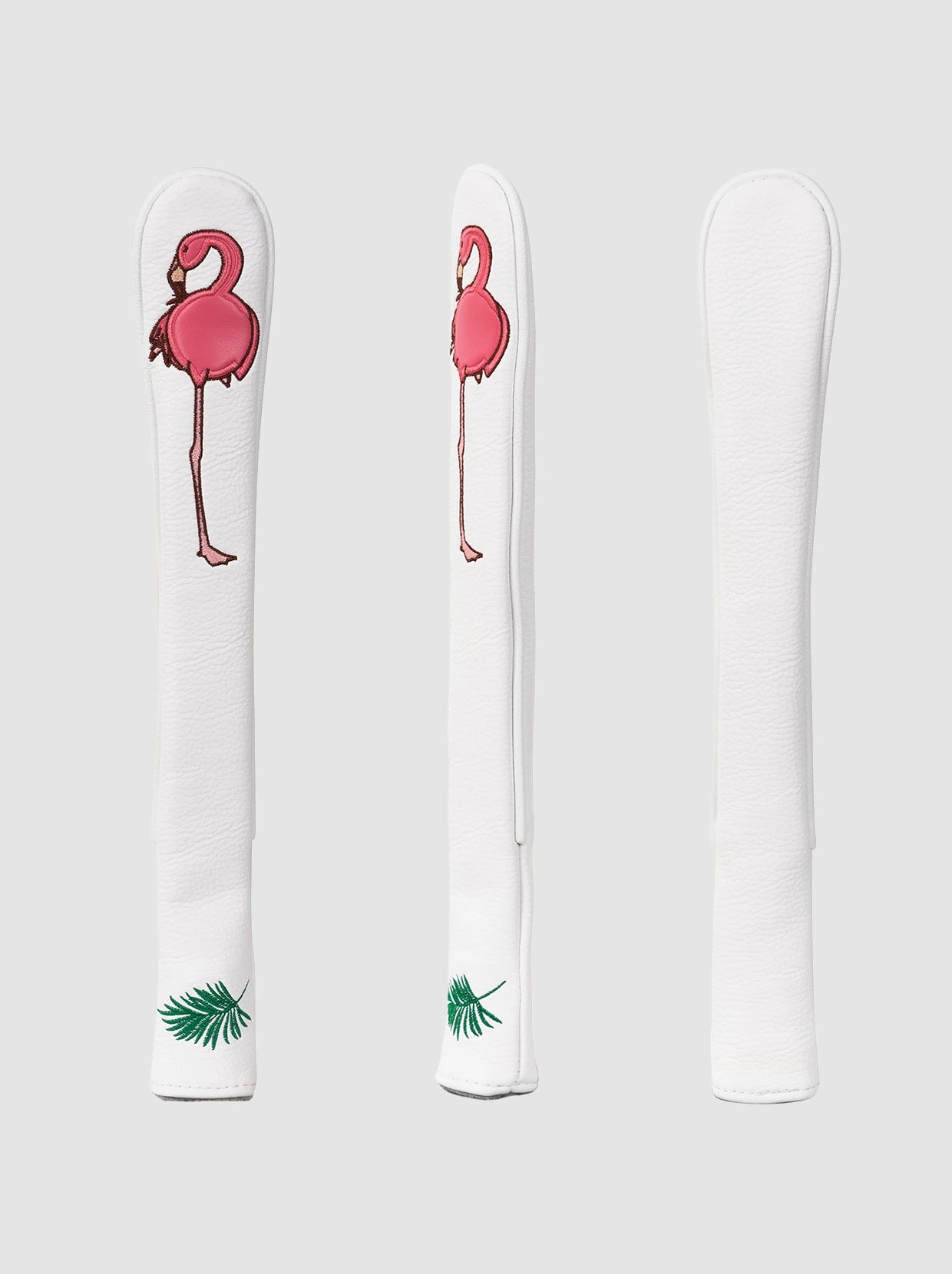 Keep your alignment sticks safe with this whimsical pink flamingo headcover. Crafted from durable leather with a plush inner lining, it delivers serious protection without taking itself too seriously. The bold flamingo-on-white design adds a touch to your golf bag. Holds up to two sticks, making it perfect for golfers who appreciate a little fun with their gear.