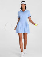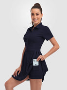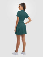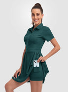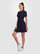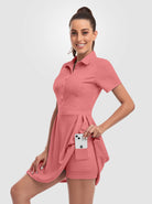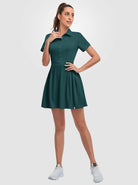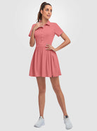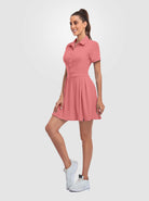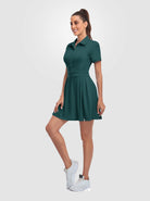Short-sleeve Athletic 34" Pleated Dresses with Shorts and Pockets