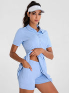 Your dream to glide across the course like a graceful flamingo is about to come true! Our short-sleeved tennis/golf dress is designed to enhance your feminine curves while ensuring maximum comfort and style. With 4-way stretch and anti-wrinkle fabric, you'll be serving looks and aces effortlessly. It's the perfect time to unleash your inner athlete!