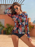 Colorful Leaves Quarter-zip Long-sleeve Rash Guards with Thumbholes