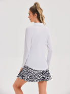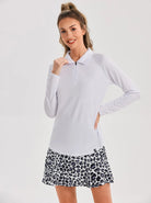 Solid White Long Sleeve Quarter Zipper Polo For Women