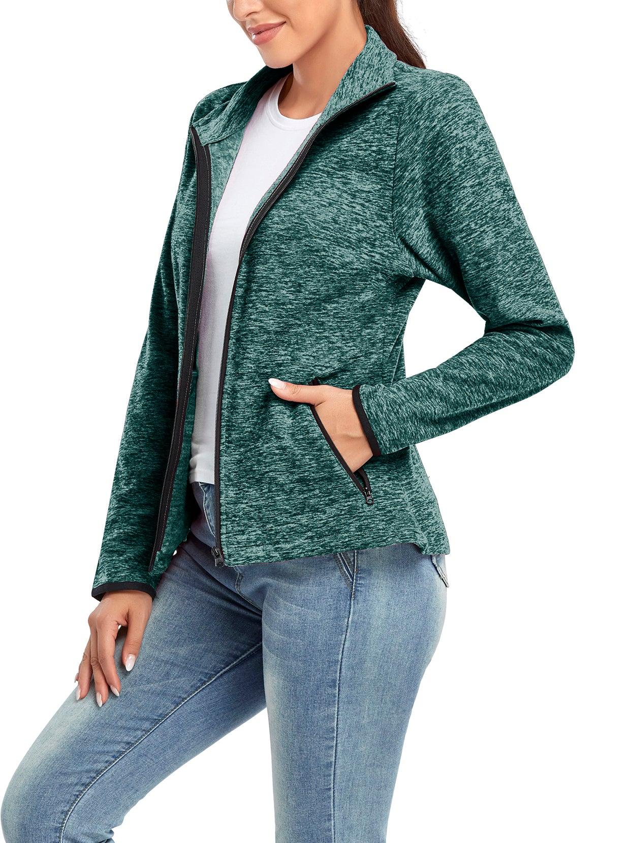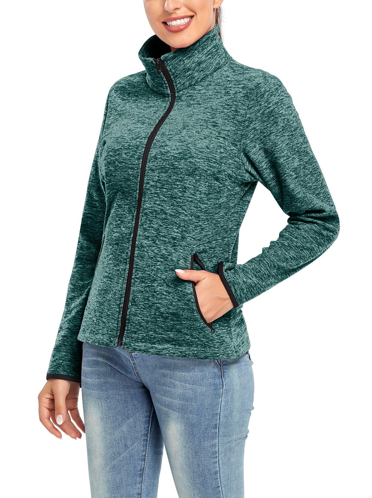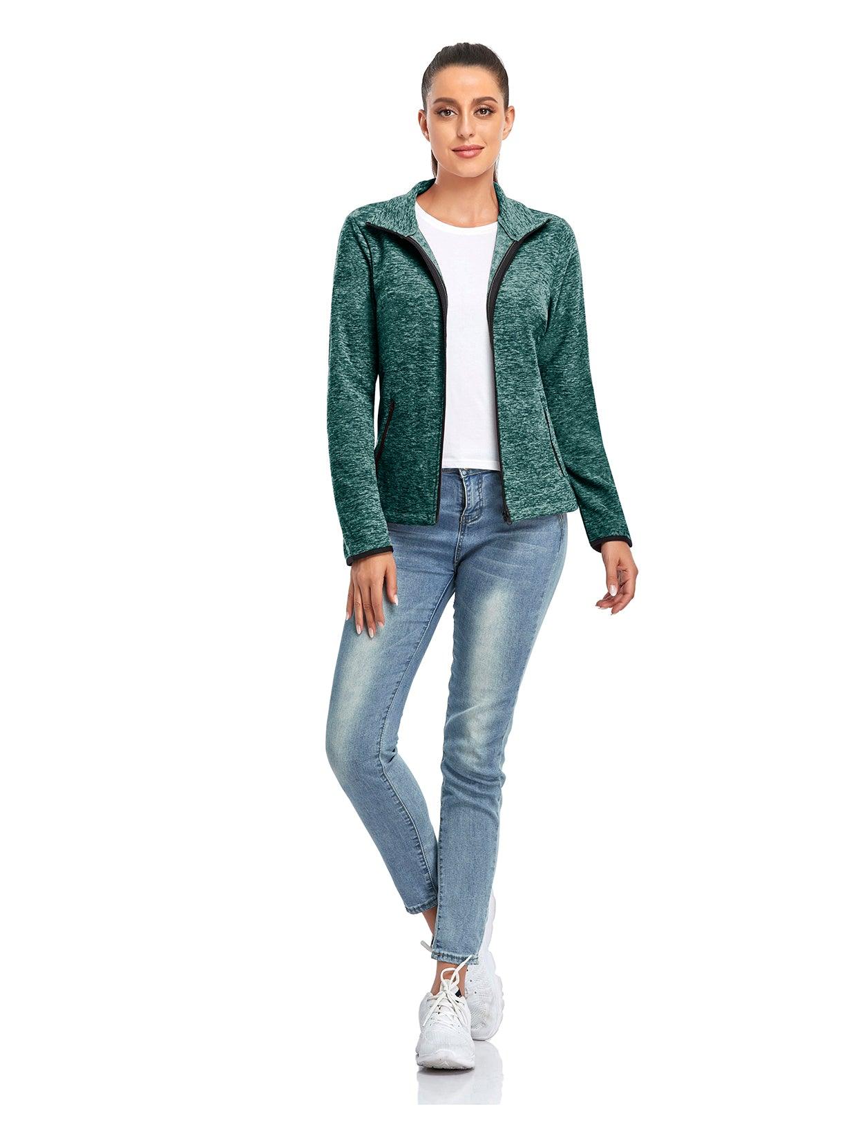 Lake Green Stand-collar Long-sleeve Fleece Jacket For Women