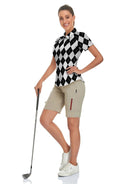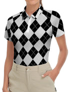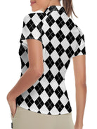 Black and Gray Checkboard Short-sleeve Golf Shirt for Women