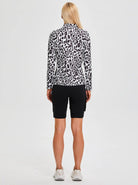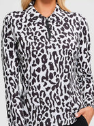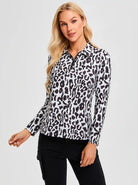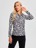 Black Leopard Quarterzip Long-sleeve Polo Top for Ladies