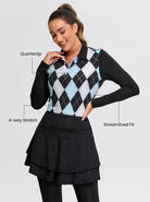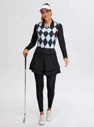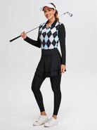 Black and Blue Argyle Quarter-zip Long-sleeve Fleece Top for Women