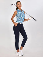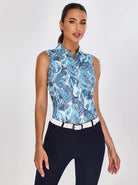 Blue Sleeveless Paisley Athletic Golf Polo Shirts For Women