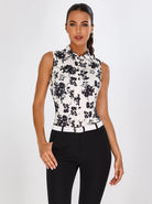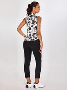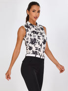 Black Leaves Sleeveless Button-Down Golf Polo Shirts For Women