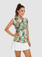 Summer Palm Trees Ruffled Sleeveless Polo Shirts
